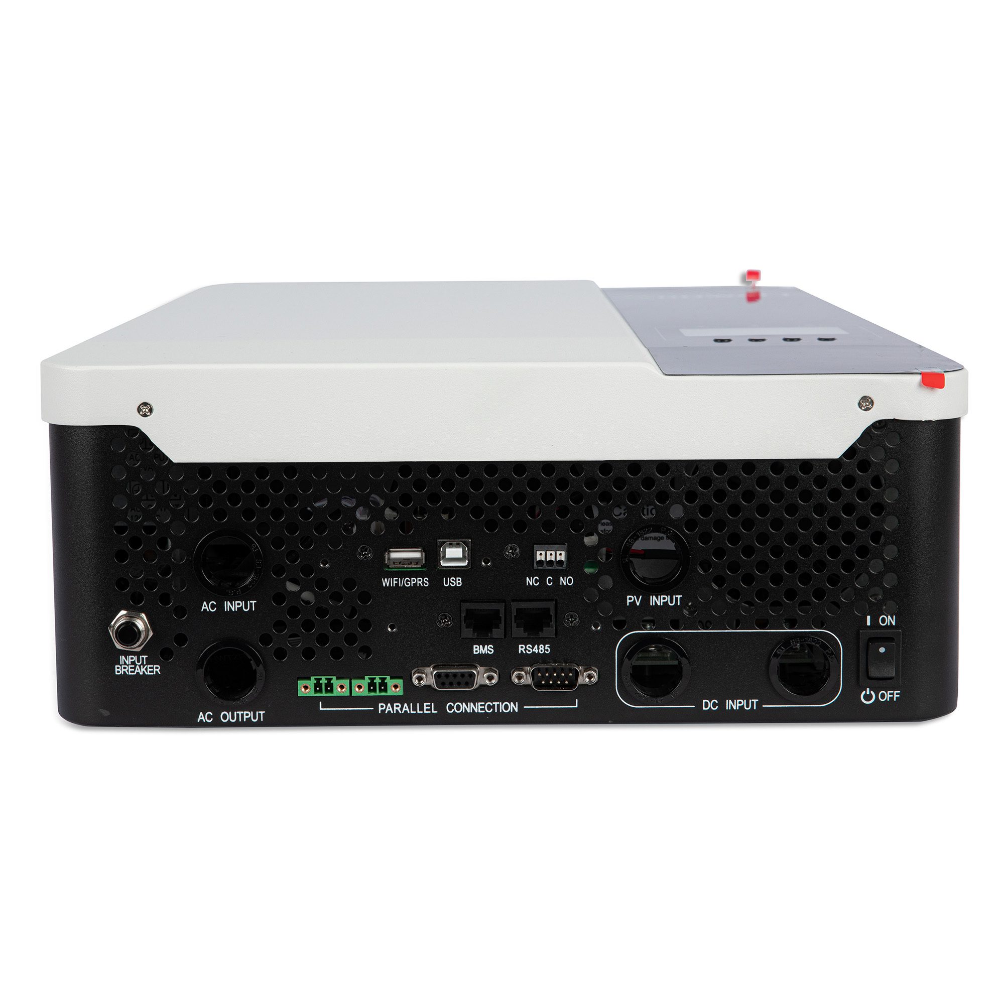 El Inversor Cargador Growatt SPF 3000TL LVM-ES incorpora un controlador de carga MPPT integrado, tiene función de carga de ecualización, puede contar en la instalación con o sin batería, también es posible configurar la prioridad de entrada bien sea de red o solar, así como capacidad de monitorizar el sistema remotamente mediante señal WIFI/GPRS opcional.